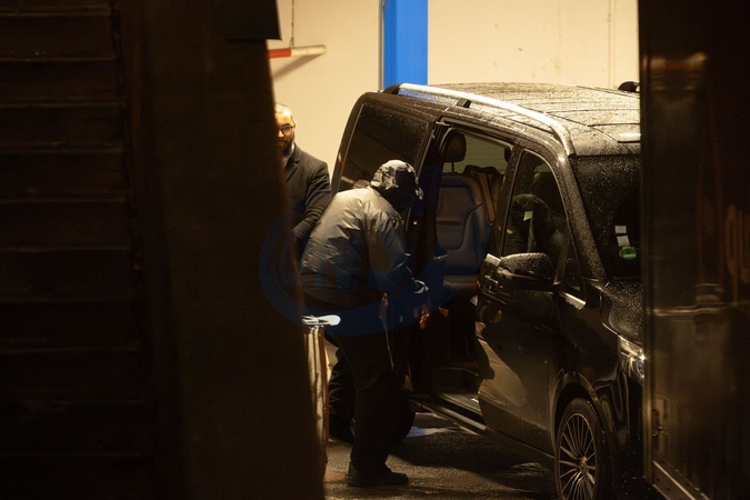 Exclusif - Kanye West et sa fille North quittent l'accor Arena Paris après le concert Vultures Volume 1 le 25 février 2024. Exclusive - No Web en Suisse / Belgique - Kanye West and daughter North leave the Accor Arena Paris after the Vultures Volume 1 concert on 25 February 2024.