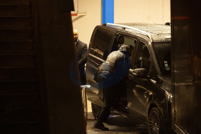 Exclusif - Kanye West et sa fille North quittent l'accor Arena Paris après le concert Vultures Volume 1 le 25 février 2024. Exclusive - No Web en Suisse / Belgique - Kanye West and daughter North leave the Accor Arena Paris after the Vultures Volume 1 concert on 25 February 2024.