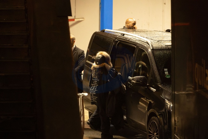 Kanye West i jego córka North opuszczają Accor Arena Paris po koncercie Vultures Volume 1