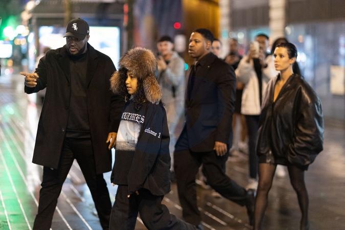 Exclusif - Bianca Censori et North West vont au restaurant Popeyes après le concert de Kanye à l'Accor Arena puis changent d'avis pour aller au Mc Donald le 25 février 2024 Exclusive - For Germany call for price - No web en Suisse / Belgique Bianca Censori and North West go to Popeyes after Kanye's concert at the Accor Arena then change their minds and go to McDonald's on 25 February 2024