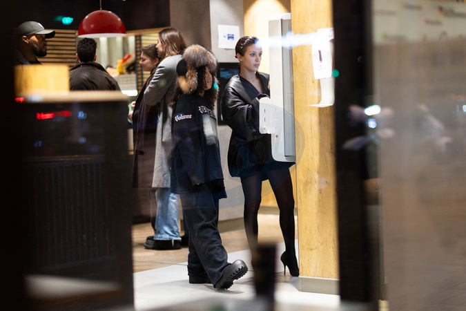Exclusif - Bianca Censori et North West vont au restaurant Popeyes après le concert de Kanye à l'Accor Arena puis changent d'avis pour aller au Mc Donald le 25 février 2024 Exclusive - For Germany call for price - No web en Suisse / Belgique Bianca Censori and North West go to Popeyes after Kanye's concert at the Accor Arena then change their minds and go to McDonald's on 25 February 2024