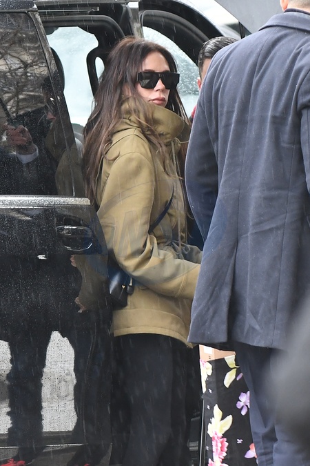 Semi-exclusif - Victoria Beckham arrive sous une pluie battante à Gare du Nord à Paris