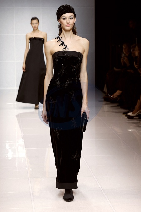 Défilé Giorgio Armani mode femme automne / hiver 2024-2025 lors de la Fashion Week de Milan (MFW), à Milan, Italie, le 25 février 2024. Giorgio Armani fashion show during the Milan Fashion Week Womenswear Fall/Winter 2024-2025 on February 25, 2024 in Milan, Italy.
