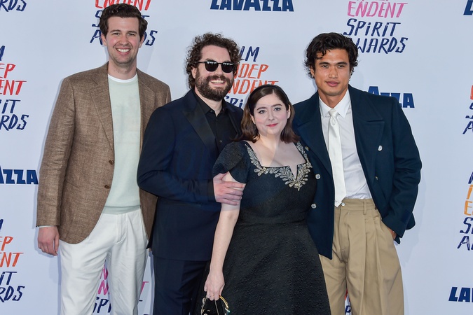 SANTA MONICA, LOS ANGELES, CALIFORNIA, USA - FEBRUARY 25: Grant S. Johnson, Alex Mechanik, Samy Burch and Charles Melton arrive at the 2024 Film Independent Spirit Awards (39th Annual Film Independent Spirit Awards) held at the Santa Monica Beach on February 25, 2024 in Santa Monica, Los Angeles, California, United States., Credit:Image Press Agency / Avalon