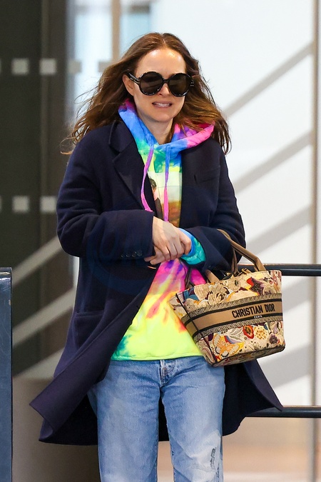 Exclusif - L'actrice, productrice et réalisatrice israélo-américaine Natalie Portman arrive à l'aéroport de Paris-Charles de Gaulle (CDG) après la 39ème cérémonie des "Film Independent Spirit Awards" à Santa Monica, à Roissy-en-France, France, le 26 février 2024. Natalie Portman porte un sac à main Christian Dior. No Web pour la Belgique et la Suisse Exclusive - For Germany Call For Price - Israeli-American actress, producer and director Natalie Portman arrives at Paris-Charles de Gaulle (CDG) airport after the 39th "Film Independent Spirit Awards" ceremony in Santa Monica, Roissy-en-France, France, on February 26, 2024. Natalie Portman wears a Christian Dior handbag.