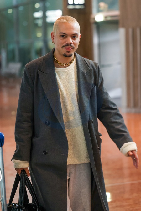 Exclusif - Evan Ross arrive à l'aéroport de Paris-Charles de Gaulle (CDG) lors de la semaine de la mode femme automne/hiver 2024-2025 (PFW)