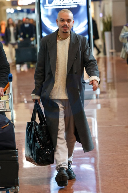 Exclusif - Evan Ross arrive à l'aéroport de Paris-Charles de Gaulle (CDG) lors de la semaine de la mode femme automne/hiver 2024-2025 (PFW)
