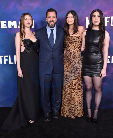 Jackie Sandler, Adam Sandler, Sunny Sandler and Sadie Sandler arriving to Netflix's ‘Spaceman' Special Screening at Egyptian Theatre on February 26, 2024 in Hollywood