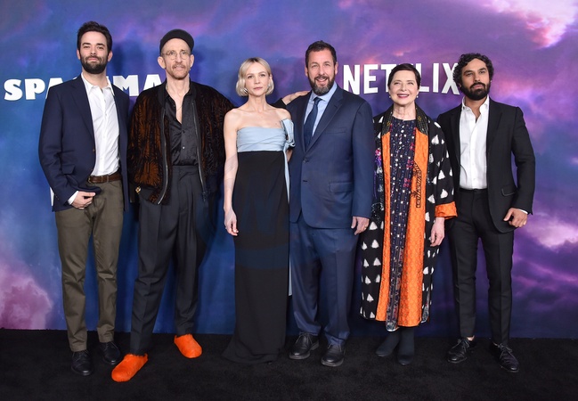 Michael Parets, Johan Rench, Carey Mulligan, Adam Sandler, Isabella Rossellini and Kunal Nayyar arriving to Netflix's ‘Spaceman' Special Screening at Egyptian Theatre on February 26, 2024 in Hollywood
