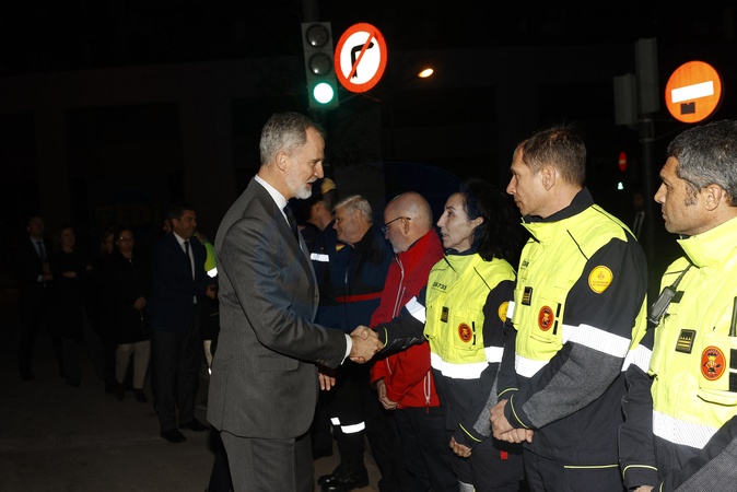 Le roi Felipe VI et la reine Letizia visitent la zone d'un complexe d'appartements de 14 étages après l'incendie qui l'a ravagé jeudi dernier à Valence
