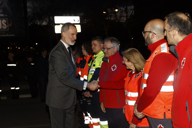 Le roi Felipe VI et la reine Letizia visitent la zone d'un complexe d'appartements de 14 étages après l'incendie qui l'a ravagé jeudi dernier à Valence
