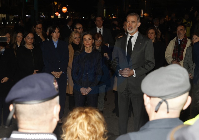 Le roi Felipe VI et la reine Letizia visitent la zone d'un complexe d'appartements de 14 étages après l'incendie qui l'a ravagé jeudi dernier à Valence