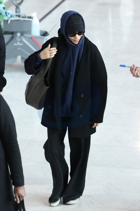 Exclusif - Zoë Kravitz arrive à l'aéroport de Paris-Charles de Gaulle (CDG) lors de la semaine de la mode femme automne/hiver 2024-2025 (PFW), à Roissy-en-France, France, le 27 février 2024. Exclusive - For Germany Call For Price - Zoe Kravitz arrives at Paris-Charles de Gaulle Airport (CDG) during Women's Fashion Week Fall/Winter 2024-2025 (PFW), in Roissy-en-France, France, on February 27, 2024.