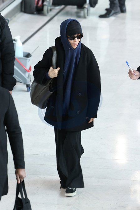 Exclusif - Zoë Kravitz arrive à l'aéroport de Paris-Charles de Gaulle (CDG) lors de la semaine de la mode femme automne/hiver 2024-2025 (PFW), à Roissy-en-France, France, le 27 février 2024. Exclusive - For Germany Call For Price - Zoe Kravitz arrives at Paris-Charles de Gaulle Airport (CDG) during Women's Fashion Week Fall/Winter 2024-2025 (PFW), in Roissy-en-France, France, on February 27, 2024.