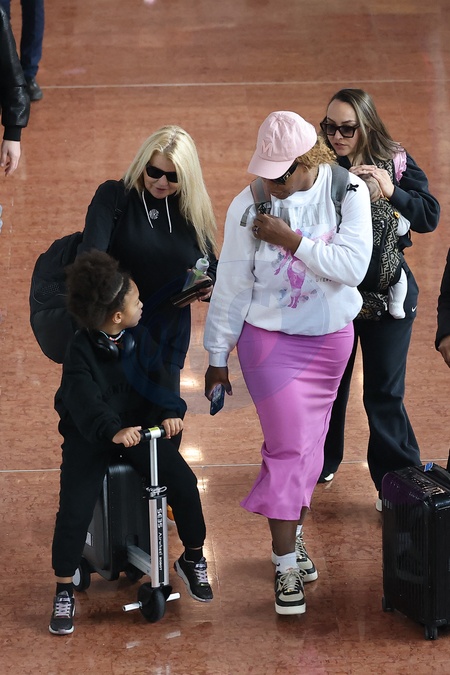 Exclusif - Serena William avec ses filles Olympia et Adira arrivent à l'aéroport de Paris-Charles de Gaulle (CDG) lors de la semaine de la mode femme automne/hiver 2024-2025 (PFW), à Roissy-en-France, France, le 27 février 2024. Merci de flouter le visage des enfants avant publication Exclusive - For Germany Call For Price -Serena William and her daughters Olympia and Adira arrive at Paris-Charles de Gaulle Airport (CDG) during Women's Fashion Week Fall/Winter 2024-2025 (PFW), in Roissy-en-France, France, on February 27, 2024.