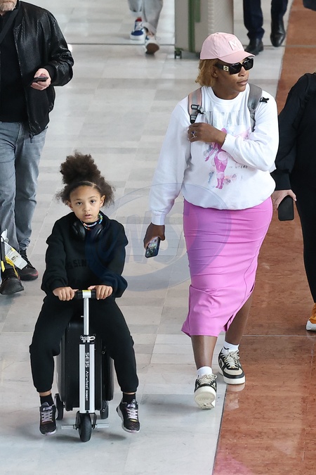 Exclusif - Serena William avec ses filles Olympia et Adira arrivent à l'aéroport de Paris-Charles de Gaulle (CDG) lors de la semaine de la mode femme automne/hiver 2024-2025 (PFW)