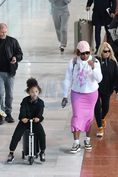Exclusif - Serena William avec ses filles Olympia et Adira arrivent à l'aéroport de Paris-Charles de Gaulle (CDG) lors de la semaine de la mode femme automne/hiver 2024-2025 (PFW)