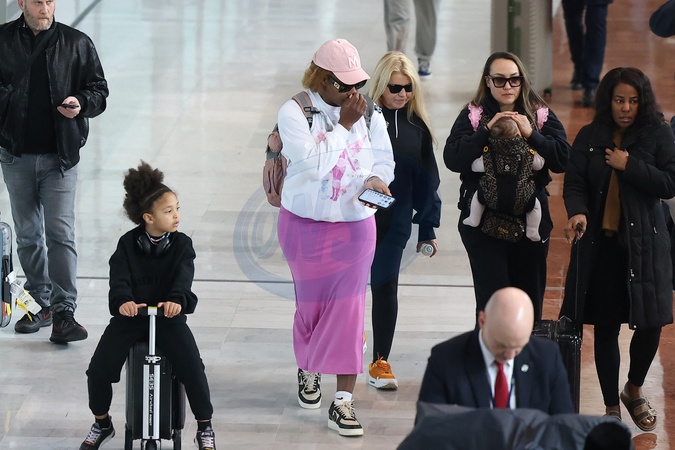 Exclusif - Serena William avec ses filles Olympia et Adira arrivent à l'aéroport de Paris-Charles de Gaulle (CDG) lors de la semaine de la mode femme automne/hiver 2024-2025 (PFW), à Roissy-en-France, France, le 27 février 2024. Merci de flouter le visage des enfants avant publication Exclusive - For Germany Call For Price -Serena William and her daughters Olympia and Adira arrive at Paris-Charles de Gaulle Airport (CDG) during Women's Fashion Week Fall/Winter 2024-2025 (PFW), in Roissy-en-France, France, on February 27, 2024.