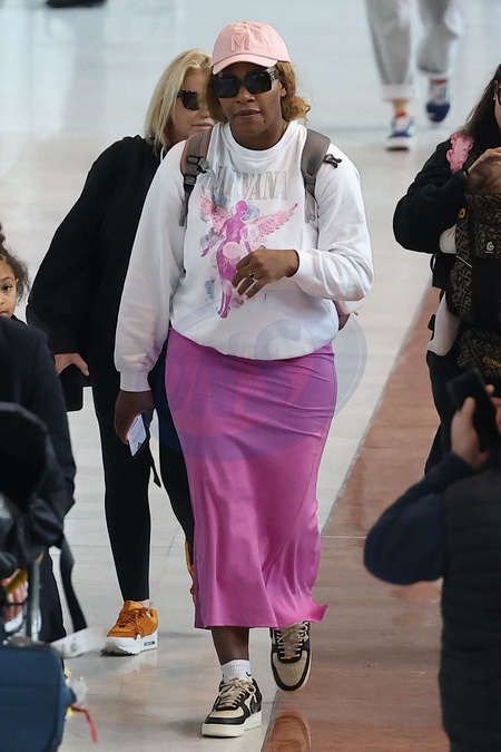Exclusif - Serena William avec ses filles Olympia et Adira arrivent à l'aéroport de Paris-Charles de Gaulle (CDG) lors de la semaine de la mode femme automne/hiver 2024-2025 (PFW)