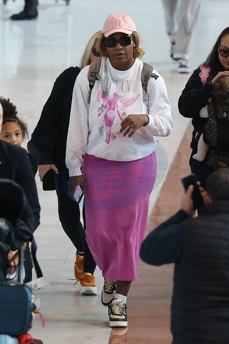 Exclusif - Serena William avec ses filles Olympia et Adira arrivent à l'aéroport de Paris-Charles de Gaulle (CDG) lors de la semaine de la mode femme automne/hiver 2024-2025 (PFW)