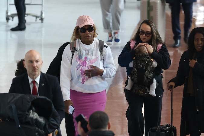 Exclusif - Serena William avec ses filles Olympia et Adira arrivent à l'aéroport de Paris-Charles de Gaulle (CDG) lors de la semaine de la mode femme automne/hiver 2024-2025 (PFW), à Roissy-en-France, France, le 27 février 2024. Merci de flouter le visage des enfants avant publication Exclusive - For Germany Call For Price -Serena William and her daughters Olympia and Adira arrive at Paris-Charles de Gaulle Airport (CDG) during Women's Fashion Week Fall/Winter 2024-2025 (PFW), in Roissy-en-France, France, on February 27, 2024.