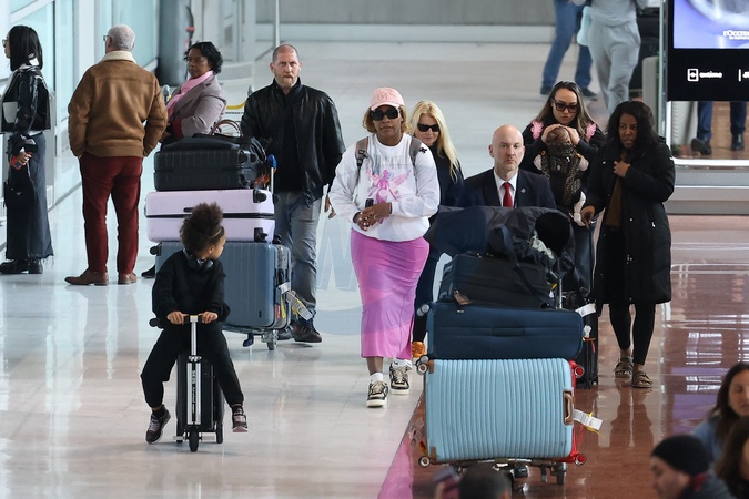 Exclusif - Serena William avec ses filles Olympia et Adira arrivent à l'aéroport de Paris-Charles de Gaulle (CDG) lors de la semaine de la mode femme automne/hiver 2024-2025 (PFW), à Roissy-en-France, France, le 27 février 2024. Merci de flouter le visage des enfants avant publication Exclusive - For Germany Call For Price -Serena William and her daughters Olympia and Adira arrive at Paris-Charles de Gaulle Airport (CDG) during Women's Fashion Week Fall/Winter 2024-2025 (PFW), in Roissy-en-France, France, on February 27, 2024.