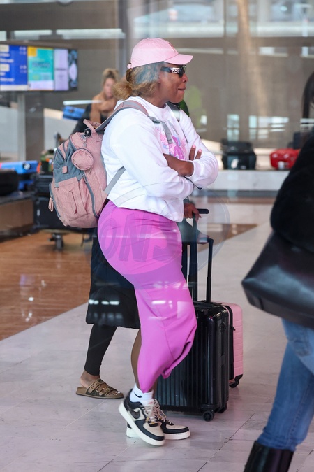 Exclusif - Serena William avec ses filles Olympia et Adira arrivent à l'aéroport de Paris-Charles de Gaulle (CDG) lors de la semaine de la mode femme automne/hiver 2024-2025 (PFW)