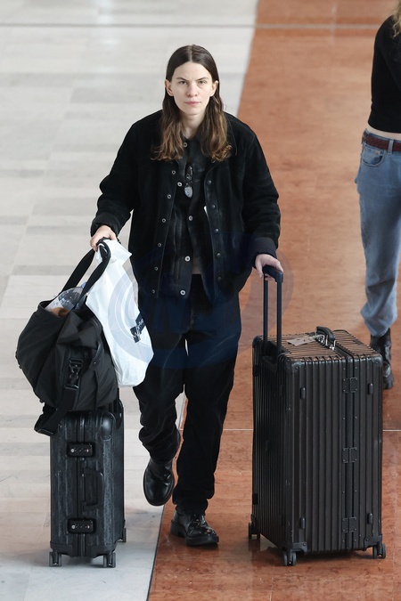 Exclusif - Eliot Paulina Sumner (I Blame Coco, fille de Sting) arrive à l'aéroport de Paris-Charles de Gaulle (CDG) lors de la semaine de la mode femme automne/hiver 2024-2025 (PFW), à Roissy-en-France, France, le 27 février 2024. Exclusive - For Germany Call For Price - Eliot Paulina Sumner (I Blame Coco, daughter of Sting) arrives at Paris-Charles de Gaulle Airport (CDG) during Women's Fashion Week Fall/Winter 2024-2025 (PFW), in Roissy-en-France, France, on February 27, 2024.