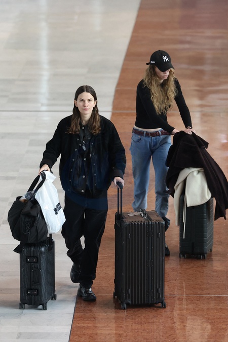 Exclusif - Eliot Paulina Sumner arrive à l'aéroport de Paris-Charles de Gaulle (CDG) lors de la semaine de la mode femme automne/hiver 2024-2025 (PFW)