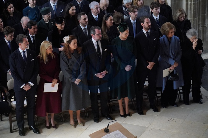 (left to right) Crown Prince Pavlos of Greece, Crown Princess Marie-Chantal of Greece, Princess Alexia of Greece, Prince Nikolaus of Greece, Princess Theodora of Greece, Prince Philippos of Greece, Queen Sofia of Spain and Princess Irene of Greece attend a thanksgiving service for the life of King Constantine of the Hellenes at St George's Chapel, in Windsor Castle, Berkshire. Picture date: Tuesday February 27, 2024. PA Photo. Constantine II, who died on January 10, 2023 was the last King of Greece, reigning from 1964 to 1974. See PA story ROYAL Constantine. Photo credit should read: Jonathan, Credit:Jonathan Brady / Avalon