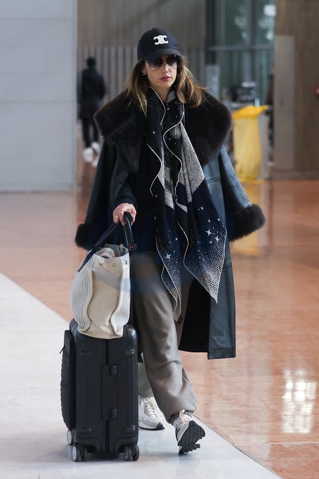 Exclusif - La mannequin brésilienne Alessandra Ambrósio arrive à l'aéroport de Paris-Charles de Gaulle (CDG) lors de la semaine de la mode femme automne/hiver 2024-2025 (PFW), à Roissy-en-France, France, le 27 février 2024. Alessandra Ambrósio est allée dans un Brioche Dorée pour sa dose de caféine. Exclusive - For Germany Call For Price - Brazilian model Alessandra Ambrosio arrives at Paris-Charles de Gaulle Airport (CDG) during Women's Fashion Week Fall/Winter 2024-2025 (PFW), in Roissy-en-France, France, on February 27, 2024. Alessandra Ambrósio went to a Brioche Dorée for a coffee.