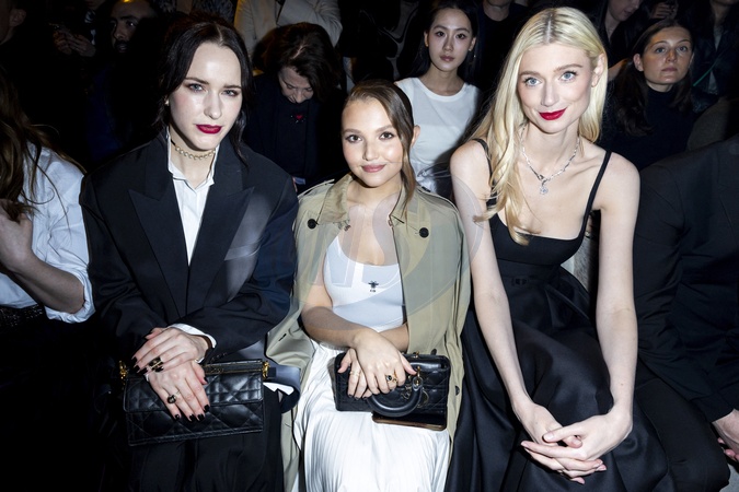 Rachel Brosnahan, Mia McKenna et Elizabeth Debicki au front row du défilé Christian Dior mode femme automne / hiver 2024-2025 lors de la Fashion Week de Paris (PFW), au jardin des Tuileries, à Paris, France, le 27 février 2024. © Olivier Borde/Bestimage Front row - Christian Dior womenswear fall/winter 2024-2025 show during Paris Fashion Week (PFW), at jardin des Tuileries, in Paris, France, on February 27, 2024