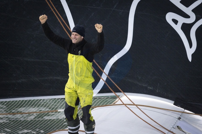 Charles Caudrelier, vainqueur de l'Arkéa Ultim Challenge (50 jours, 19 heures, 7 minutes et 42 secondes) à Brest