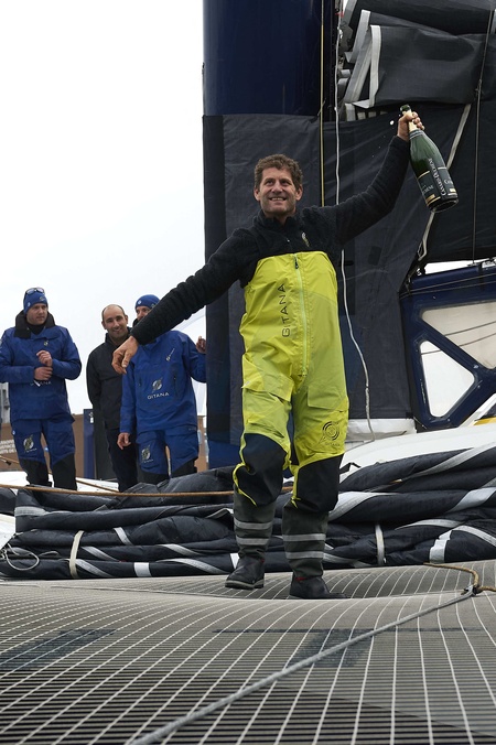 Charles Caudrelier, vainqueur de l'Arkéa Ultim Challenge (50 jours, 19 heures, 7 minutes et 42 secondes) à Brest