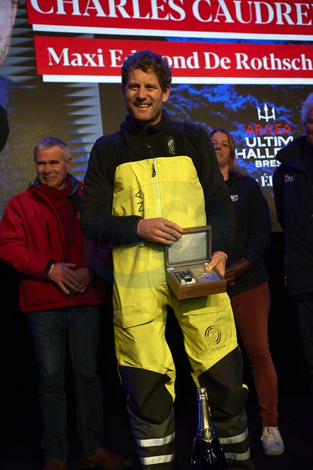 Charles Caudrelier, vainqueur de l'Arkéa Ultim Challenge (50 jours, 19 heures, 7 minutes et 42 secondes) à Brest