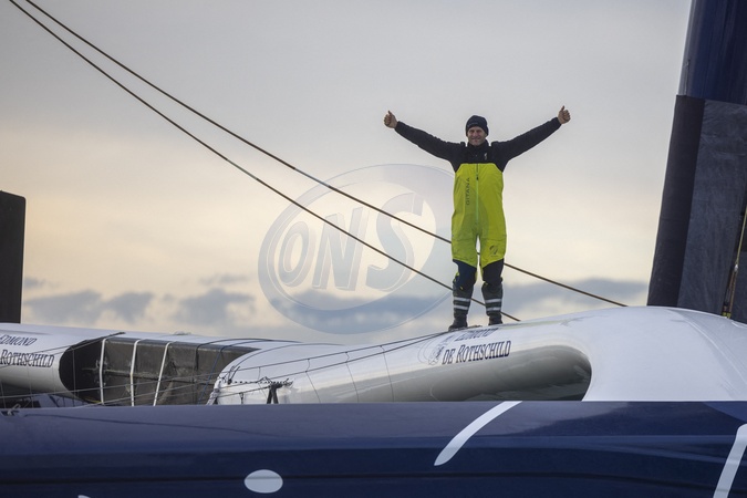 Charles Caudrelier (Maxi Edmond de Rothschild), vainqueur de l'Arkéa Ultim Challenge (50 jours, 19 heures, 7 minutes et 42 secondes) à Brest