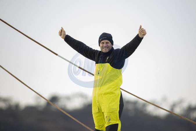 Charles Caudrelier (Maxi Edmond de Rothschild), vainqueur de l'Arkéa Ultim Challenge (50 jours, 19 heures, 7 minutes et 42 secondes) à Brest, le 27 février 2024. © Alexis Courcoux / Panoramic / Bestimage Charles Caudrelier (Maxi Edmond de Rothschild), winner of the Arkea Ultim Challenge (50 days, 19 hours, 7 minutes and 42 seconds) in Brest, February 27, 2024.