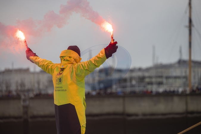 Charles Caudrelier (Maxi Edmond de Rothschild), vainqueur de l'Arkéa Ultim Challenge (50 jours, 19 heures, 7 minutes et 42 secondes) à Brest