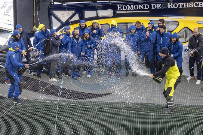 Charles Caudrelier (Maxi Edmond de Rothschild), vainqueur de l'Arkéa Ultim Challenge (50 jours, 19 heures, 7 minutes et 42 secondes) à Brest