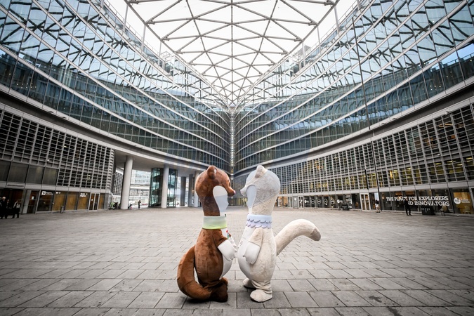 The mascots of Milano Cortina 2026, Tina (R) and Milo (L) pose in Piazza Lombardia in Milan, Italy, 27 February 2024.27 Feb 2024, Credit:Nicola Marfisi / Avalon