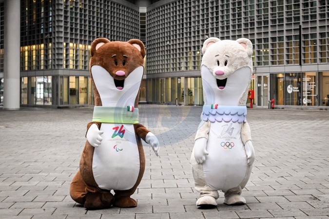 The mascots of Milano Cortina 2026, Tina (R) and Milo (L) pose in Piazza Lombardia in Milan, Italy, 27 February 2024.27 Feb 2024, Credit:Nicola Marfisi / Avalon