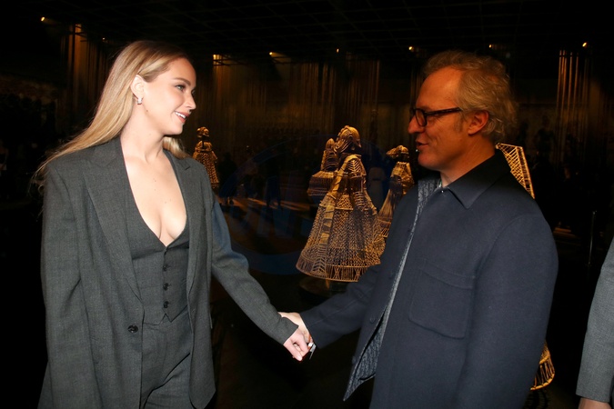 Jennifer Lawrence et Olivier Bialobos au front row du défilé Christian Dior mode femme automne / hiver 2024-2025 lors de la Fashion Week de Paris (PFW), au jardin des Tuileries, à Paris, France, le 27 février 2024. © Bertrand Rindoff/Bestimage Front row - Christian Dior womenswear fall/winter 2024-2025 show during Paris Fashion Week (PFW), at jardin des Tuileries, in Paris, France, on February 27, 2024.