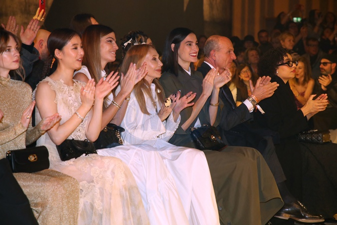 Front row au défilé Christian Dior mode femme automne / hiver 2024-2025 lors de la Fashion Week de Paris (PFW) au jardin des Tuileries