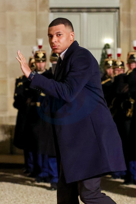 Kylian Mbappé przybywa na uroczysty obiad wydany przez Prezydenta Republiki Francuskiej na cześć emira Kataru w Pałacu Prezydenckim Elizejskim w Paryżu.