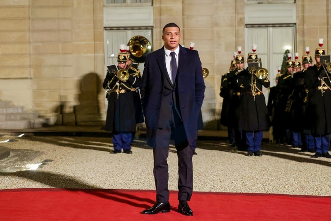 Kylian Mbappé przybywa na uroczysty obiad wydany przez Prezydenta Republiki Francuskiej na cześć emira Kataru w Pałacu Prezydenckim Elizejskim w Paryżu.