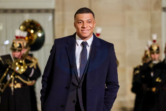 Kylian Mbappé przybywa na uroczysty obiad wydany przez Prezydenta Republiki Francuskiej na cześć emira Kataru w Pałacu Prezydenckim Elizejskim w Paryżu.