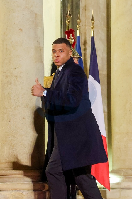 Kylian Mbappé przybywa na uroczysty obiad wydany przez Prezydenta Republiki Francuskiej na cześć emira Kataru w Pałacu Prezydenckim Elizejskim w Paryżu.