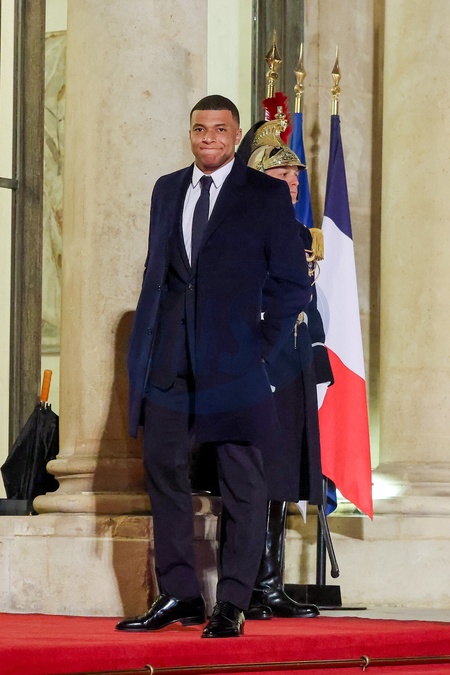 Kylian Mbappé przybywa na uroczysty obiad wydany przez Prezydenta Republiki Francuskiej na cześć emira Kataru w Pałacu Prezydenckim Elizejskim w Paryżu.