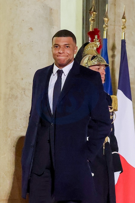 Kylian Mbappé przybywa na uroczysty obiad wydany przez Prezydenta Republiki Francuskiej na cześć emira Kataru w Pałacu Prezydenckim Elizejskim w Paryżu.