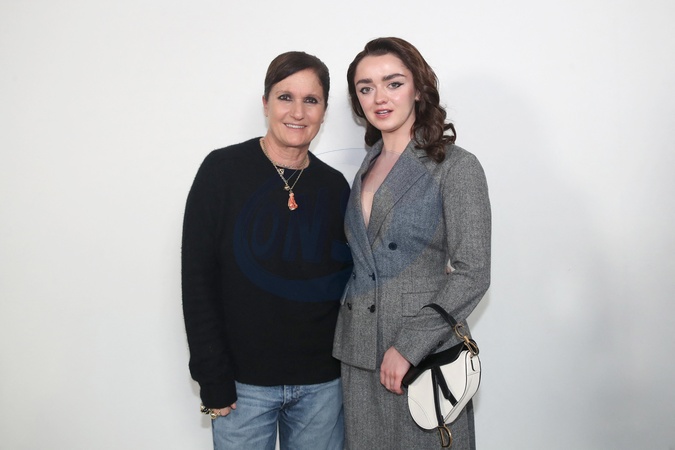 Maria Grazia Chiuri et Maisie Williams posent backstage à la suite du Défilé de Mode Dior, Prêt-à-porter Automne / Hiver 2024-2025 dans le cadre de la Fashion Week de Paris, France, le 27 Fevrier 2024. © Bertrand Rindoff / Bestimage Greetings of the Dior Womenswear Fall / Winter 2024-2025 show as part of Paris Fashion Week on February 27, 2024 in Paris, France